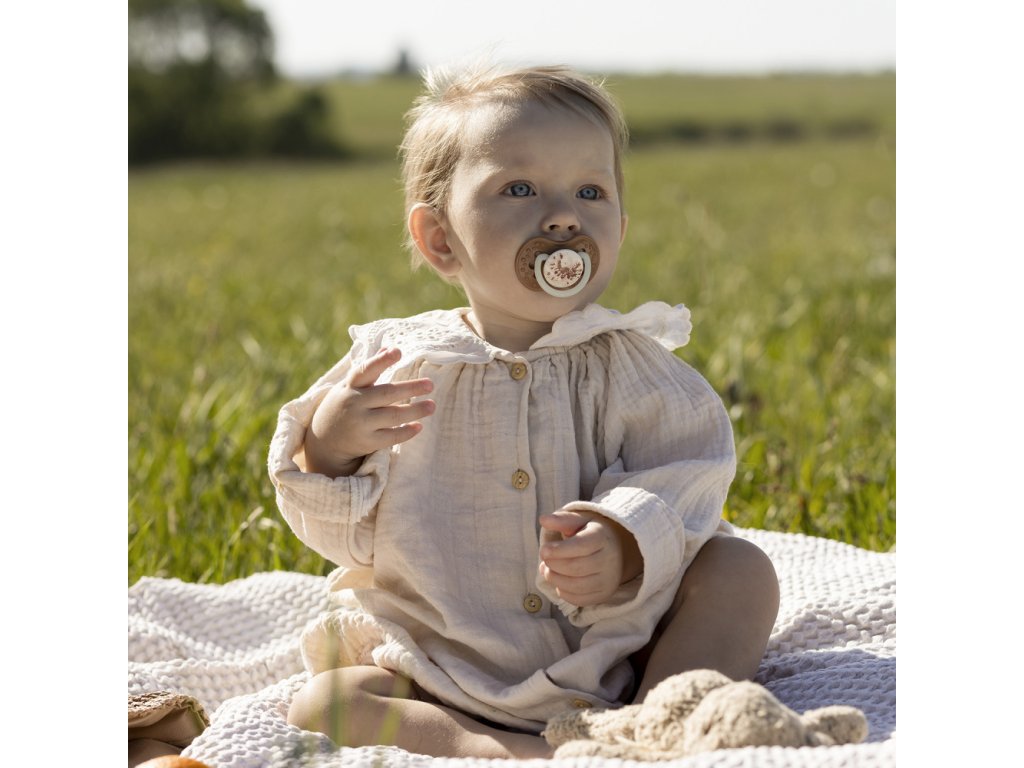 Silikónová špička cumlíka je zosilnená a tým odolnejšia proti hryzeniu. Praktické v období intenzívneho vývoja zubov a ďasien.