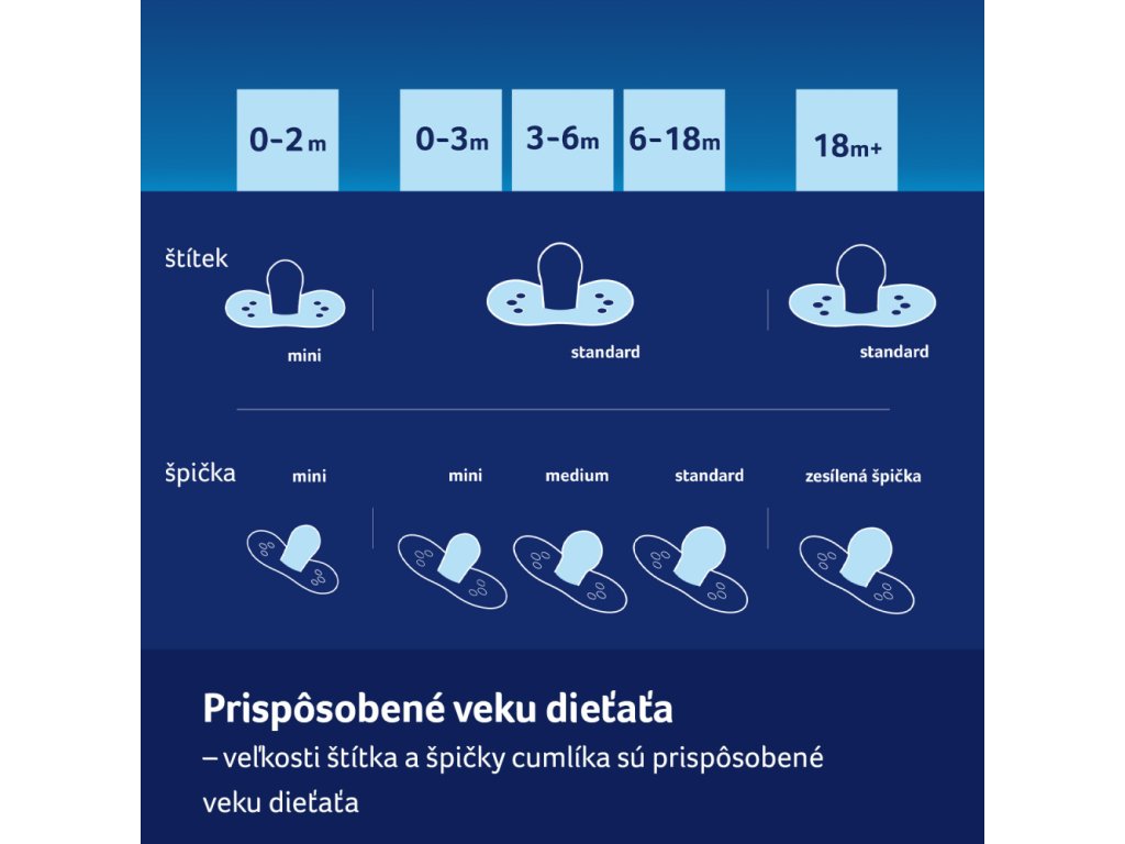 - silikónová špička sa v ústach dieťaťa nedeformuje