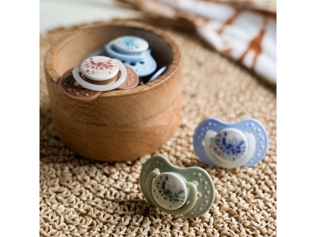 Silikónová špička cumlíka je zosilnená a tým odolnejšia proti hryzeniu. Praktické v období intenzívneho vývoja zubov a ďasien.