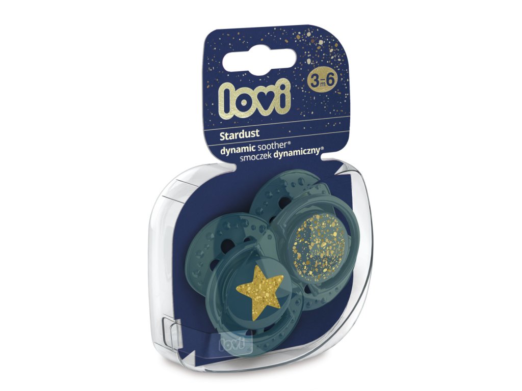 Stardust je tu! Jedinečná, designovo neprehliadnuteľná, prémiová kolekcia od LOVI. Unikátny dizajn kolekcie Stardust - zdobenie v podobe zlatej hviezdy, ktorý pripomína hviezdne nebo. Kolekcia sa pýši dynamickým cumlíkom LOVI, ktorý bol vytvorený v spolupráci s neurologédiou s cieľom zabezpečiť prirodzený a zdravý vývoj zubného poschodia, zuba a dieťaťa. Špička cumlíka sa dynamicky prispôsobuje santu dieťaťa, nenarušuje sací reflex. Neobsahuje BPA. V balení 2 ks.