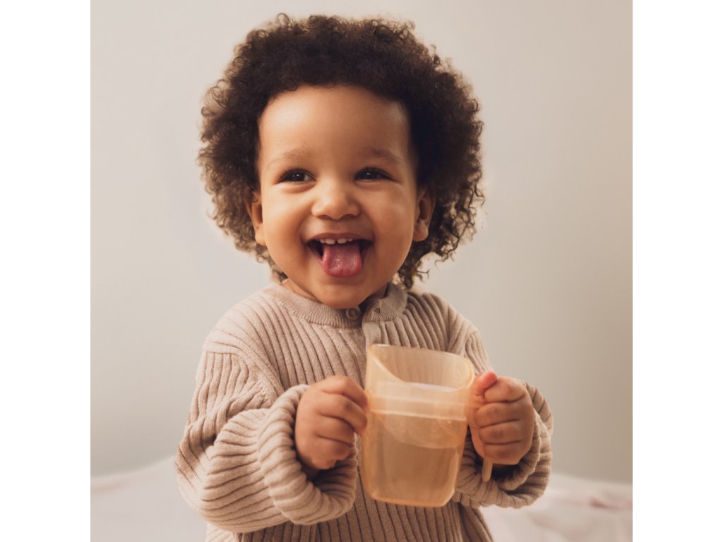 Prvý tréningový hrnček pre deti, ktoré sa učia samostatne piť.