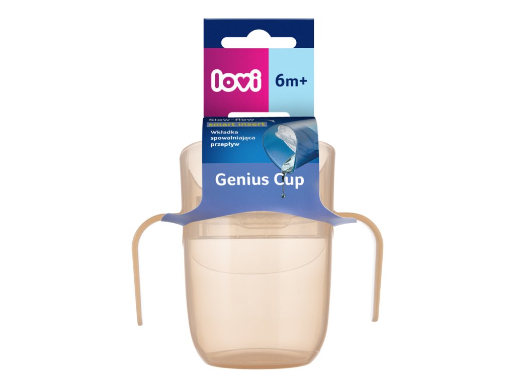 - Je to tak perfektná voľba prvého hrnčeka. Vďaka malej veľkosti - 130 ml pri použití hrnčeka s vložkou - a ergonomickými rukoväťami je tréningový hrnček LOVI Genius Nude ideálny pre tých, ktorí sa ešte len začínajú učiť, ako hrnček používať. Môžu ho používať deti, ktoré sú staršie ako 6 mesiacov a vedia už samostatne sedieť.