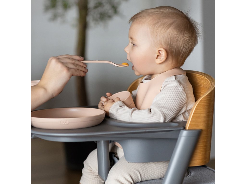 Prvá kŕmiaca lyžička je plytká, úzka a pevná, takže je ideálna na začatie rozširovania stravy. Pohodlná dlhá rukoväť uľahčuje rodičom naberanie jedla z pohára a kŕmenia dieťaťa. Umožňuje dieťaťu ľahko uchopiť lyžičku. Lyžičky LOVI majú jedinečný tvar, podobný logopedickej špachtli, aby dieťaťu uľahčili vyťahovanie jedla.