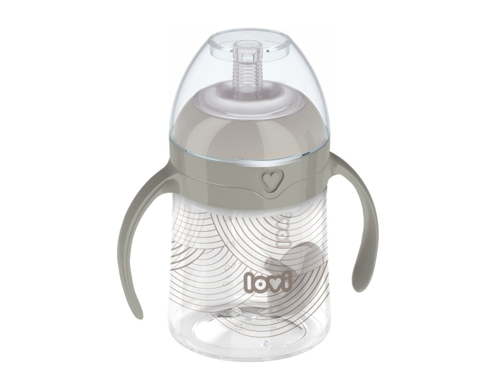 LOVI Prvý hrnček so slamkou je určený pre najmenšie deti (6m+), ktoré prvýkrát skúšajú piť zo slamky. Jemná, pružná slamka správneho priemeru a dĺžky nedráždi podnebie a dieťa ju ľahko uchopí. Slamka so závažím bezpečnej veľkosti sa pohybuje s nápojom a umožňuje piť voľne z akéhokoľvek uhla. Malá veľkosť hrnčeka (150 ml) a odnímateľný uzáver umožňujúci pitie zo všetkých strán z neho robia ideálny hrnček pre deti, ktoré sa učia piť zo slamky.