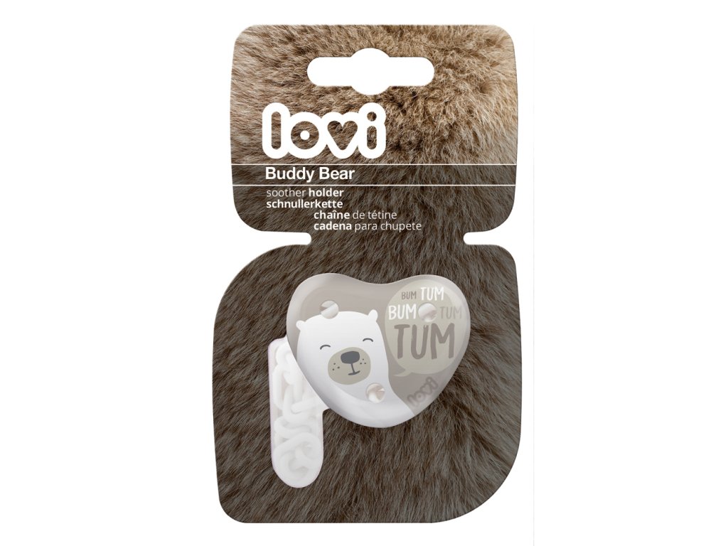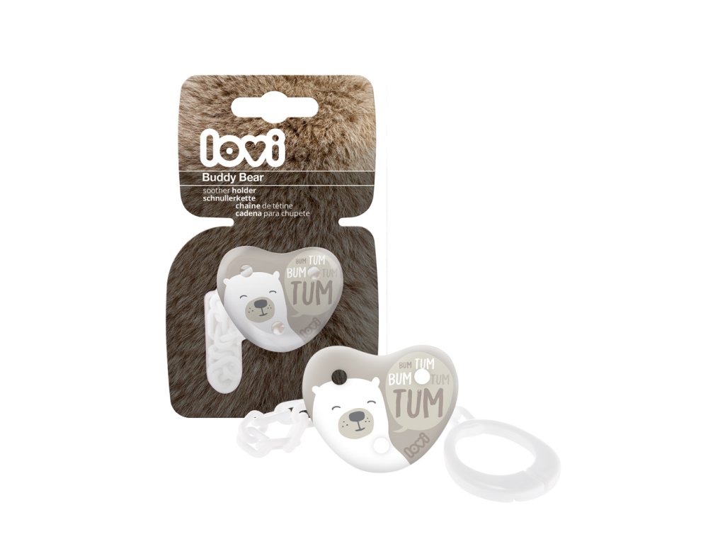 Retiazka na cumlík LOVI je vybavená praktickým štipcom, ktorý umožňuje stabilné a pevné pripevnenie k oblečeniu dieťaťa. Chráni cumlík pred znečistením alebo stratou.