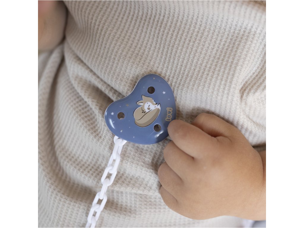 - Pevný klip - praktický a trvanlivý mechanizmus zaisťuje bezpečné pripojenie na oblečenie bábätka