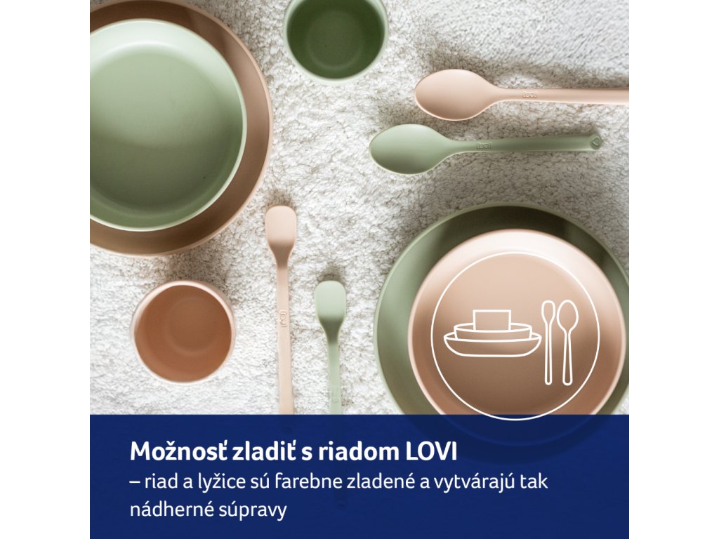 LOVI polievková lyžica je uľahčením pre deti a rodičov pri konzumácii väčších porcií a rozmanitejších jedál. Väčšia lyžica, pre tréning samostatného stravovania, je ideálna pre deti, ktoré sa učia samostatne jesť, vďaka dokonalej hĺbke a šírke lyžice sa jedlo dieťaťu nevysype a lyžička perfektne padne do úst dieťaťa.