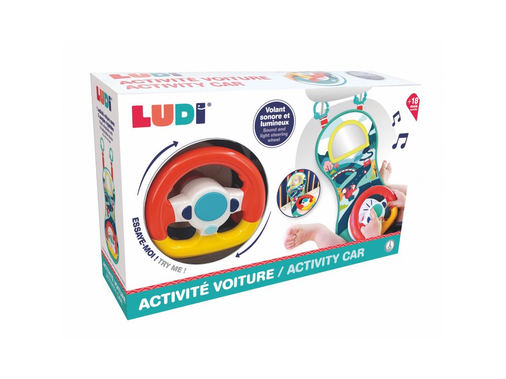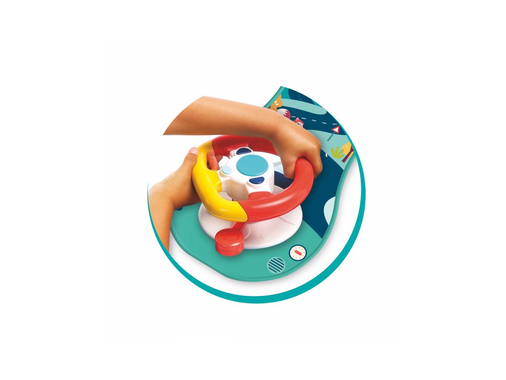 Interaktívny hrací pultík zabaví vaše dieťa na cestách autom. Volant ponúka tlačidlá so zvukmi štartovania, klaksónu a blinkrov, pozornosť dieťaťa upúta aj bezpečné zrkadlo.