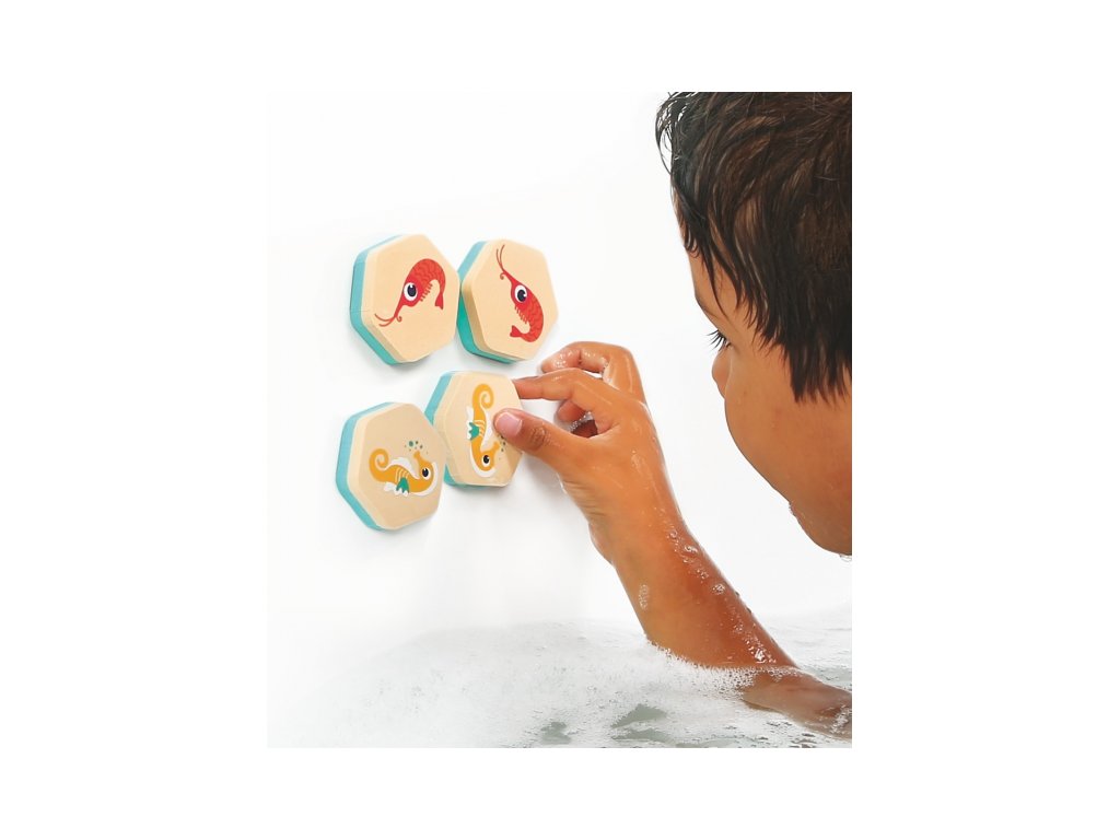 Pexeso pre najmenších s krásnymi motívmi z podmorského sveta vám umožní zahrať sa s vašim dieťaťom pexeso vo vani. Kartičky sú vyrobené z penového materiálu, ktorý pláva na hladine. Stačí ich rozložiť na hladinu a hra môže začať.