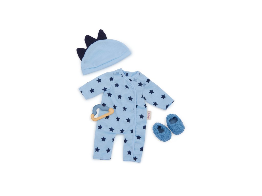 Pripravte bábiku na sladké snívanie s rozkošným nočným oblečkom LullaBaby! Tento pohodlný pyžamkový overal s hviezdičkami je doplnený o čiapočku s mäkkými 3D hrotmi, hryzátko a hebké papučky – ideálny outfit pre večerné tulenie aj nočné hranie. Vďaka jednoduchému zapínaniu sa ľahko oblieka, takže si s ním poradia aj malé detské rúčky. Hranie s bábikou podporuje rozvoj jemnej motoriky, empatie i predstavivosti.