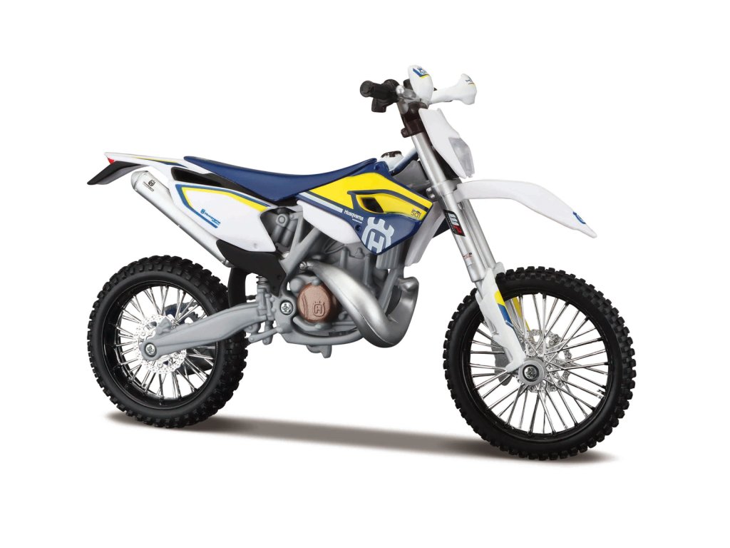 Husqvarna FE 501. Zostavte si svoj motocykel. Motocykel je vyrobený z vysoko kvalitného tlakovo liateho kovu s plastovými dielmi. Je vybavený autentickými káblami a hadicami, ovládacím pružinovým odpružením, pohyblivým podstavcom a bočným stojanom. Po dokončení je plne funkčnou podrobnou replikou. Na predlakované kovové telo nie je potrebné žiadne lepidlo ani farba. Vrátane skrutkovača a montážneho nástroja. Rozmery balenia: 18,5x25,5x5,5cm. Vek: 8+
