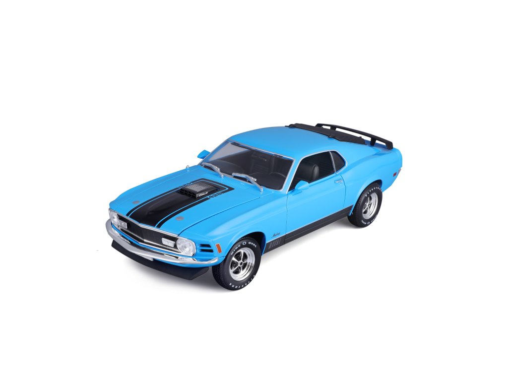 1970 Ford Mustang Mach 1. Skvele prepracovaný model prekvapí detailným spracovaním interiéru aj exteriéru. Pri modeli je možné otvoriť dvere, veko motora a kufra. Balené v krabičke. Rozmery balenia: 33x12,4x16,4cm. Vek: 3+