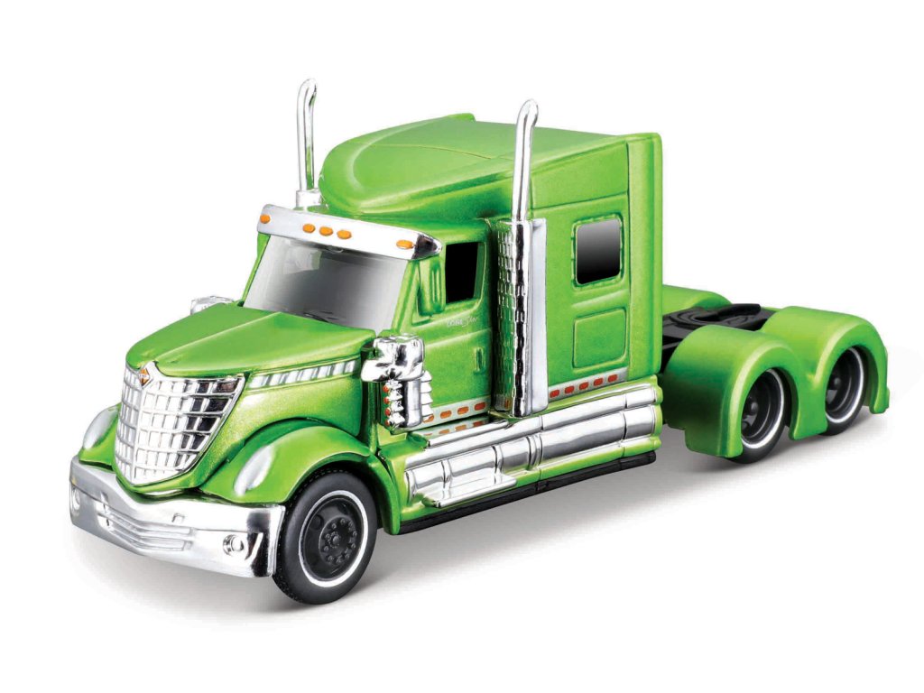 International Lone Star, zelené. Úplne nové kovové modely trackov s plastovými doplnkami. Modely majú gumové kolieska, detailné prevedenie interiérov, vrátane výrazného farebného prevedenia, ktoré im umožňuje vyniknúť od ostatných modelov. Balenie: 16,4x8,2x7,6cm. Vek: 8+
