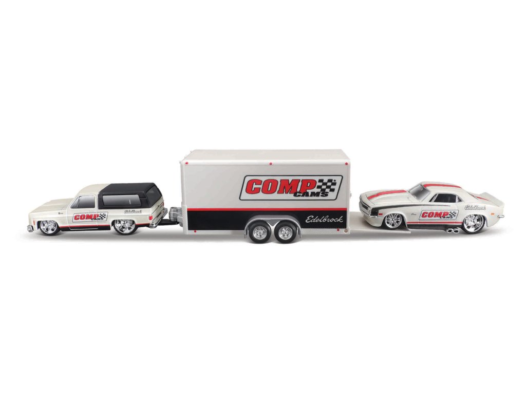 1979 Chevrolet KS Blazer + 1968 Chevrolet Camaro Z/28. Kovové auto s vlekom + kovové autíčko v mierke 1:64. Modely autíčok s perfektným prepracovaním a dizajnom majú kvalitné kovové osi kolies. Balenie: 29,2x7,3x6cm Vek: 8+