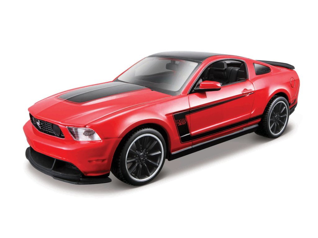 Ford Mustang Boss 302. Skladací model auta je v mierke 1:24. Model auta sa skladá podľa obrázkového návodu, ktorý je súčasťou stavebnice. Jednotlivé časti sa spájajú tlakom bez pomoci lepidla. Súčasťou balenia je skrutkovač. Balenie obsahuje 34 dielov. Mierka 1:24. Model má otváracie dvere. Kovové časti sú natreté netoxickými farbami. Rozmery balenia: 22,9x16,8x10,2cm. Vek: 8+