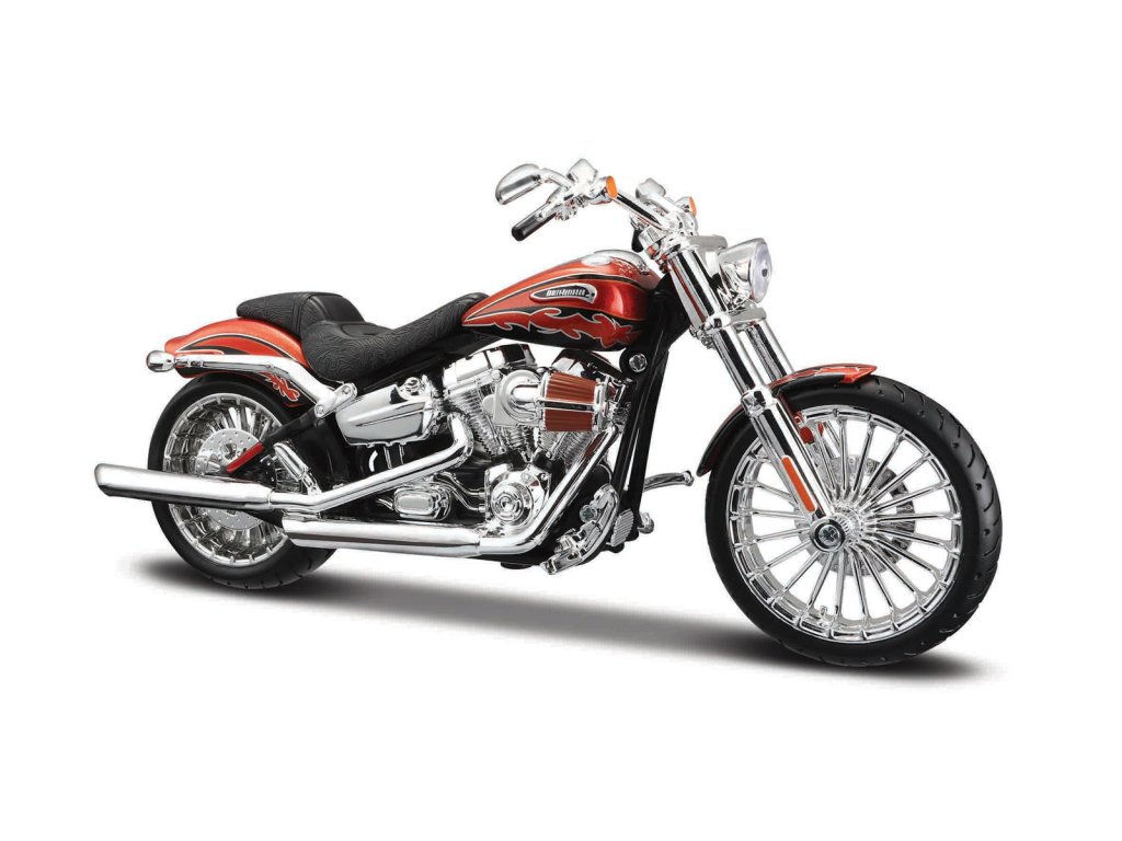 HARLEY DAVIDSON MOTORCYCLES, 2014 CVO Breakout. Modely motocyklov v mierke 1:12 majú u svojich fanúšikov veľkú obľúbenosť pre ich dokonalé prevedenie a predovšetkým veľkosť cca. 16 cm. Motocykle majú otáčavé riadidlá a odpruženú zadnú nápravu. Balené v krabičke. Nevhodné pre deti do 3 rokov. Vek: 3+