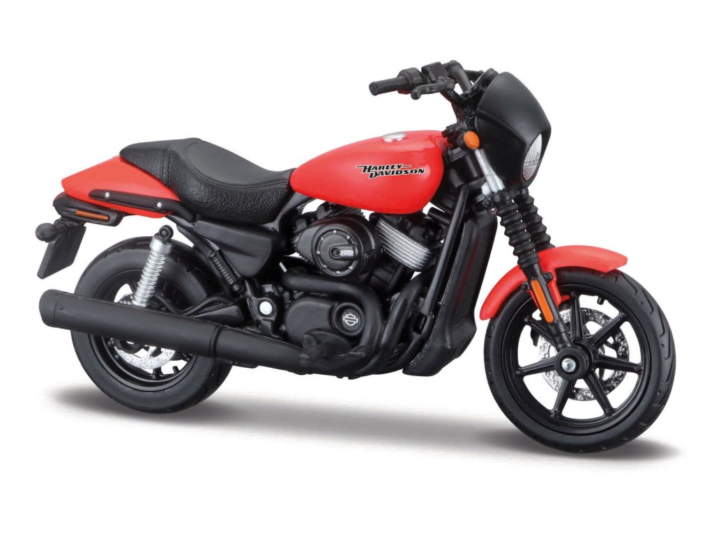 2015 Harley-Davidson Street® 750. Zoznámte sa s Harley-Davidson Street 750. Vďaka modernému výkonu úplne nového kvapalinou chladeného motora . Vyrobené z kvalitných dielov s detailnou povrchovou úpravou. Otočné riadidlá a odpružené zadné koleso. Rozmery: 17,8x10,2x7cm. Vek: 3+