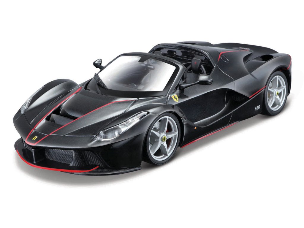 Ferrari AL - LaFerrari Aperta. Model auta sa skladá podľa obrázkového návodu, ktorý je súčasťou stavebnice. Motocykel je vyrobený z vysoko kvalitného tlakovo liateho kovu s plastovými dielmi. Je vybavený autentickými káblami a hadicami, ovládacím pružinovým odpružením, pohyblivým podstavcom a bočným stojanom. Po dokončení je plne funkčnou podrobnou replikou. Jednotlivé časti sa spájajú tlakom bez pomoci lepidla. Vrátane skrutkovača a montážneho nástroja. Rozmery balenia: 22,8x16,8x10cm. Vek: 8+