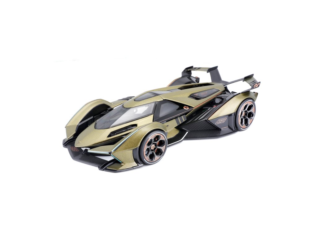 Lamborghini V12 Vision Gran Turismo. Úplne nový liaty model auta v mierke 1:18 modelu Lamborghini V12 Vision Gran Turismo. Skutočné gumové pneumatiky. Otočné kolesá. Má otváraciu kapotu a dvere. Kovový model s plastovými dielmi. Detailne prepracovaný interiér, exteriér, motorový priestor. Rozmery balenia: 34,6x13,8x18,7cm. Vek: 3+