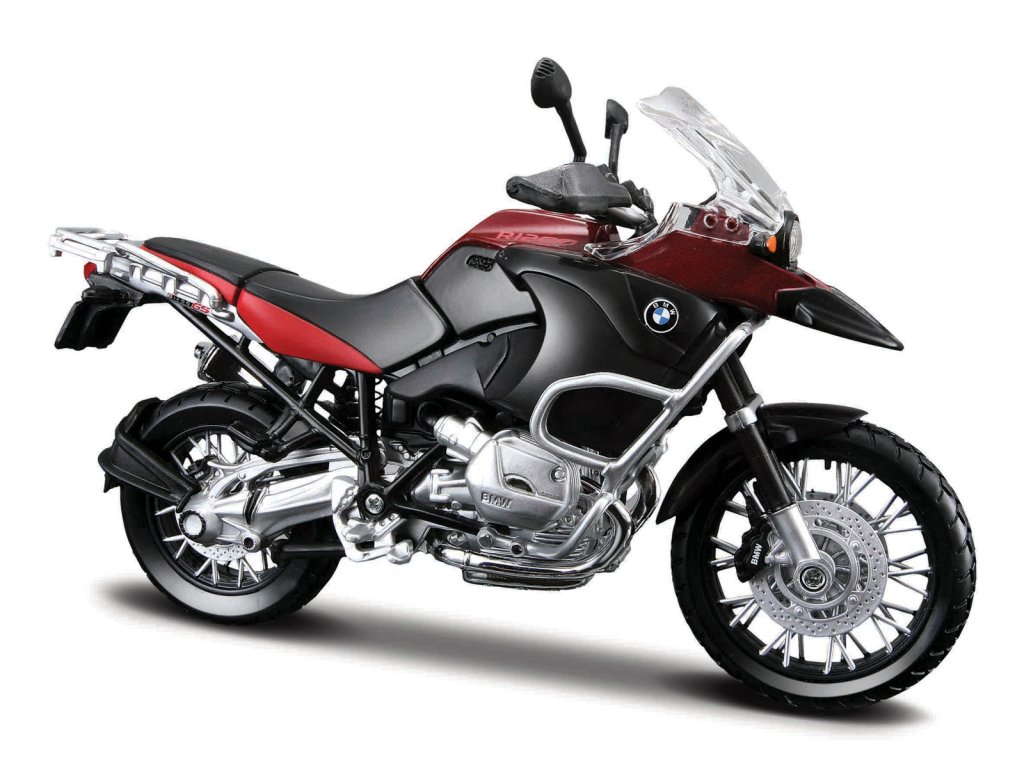 BMW R1200GS. Modely motocyklov v mierke 1:12 majú u svojich fanúšikov veľkú obľúbenosť pre ich dokonalé prevedenie a predovšetkým veľkosť cca. 16 cm. Motocykle majú otáčavé riadidlá a odpruženú zadnú nápravu. Balené v krabičke. Nevhodné pre deti do 3 rokov. Vek: 3+