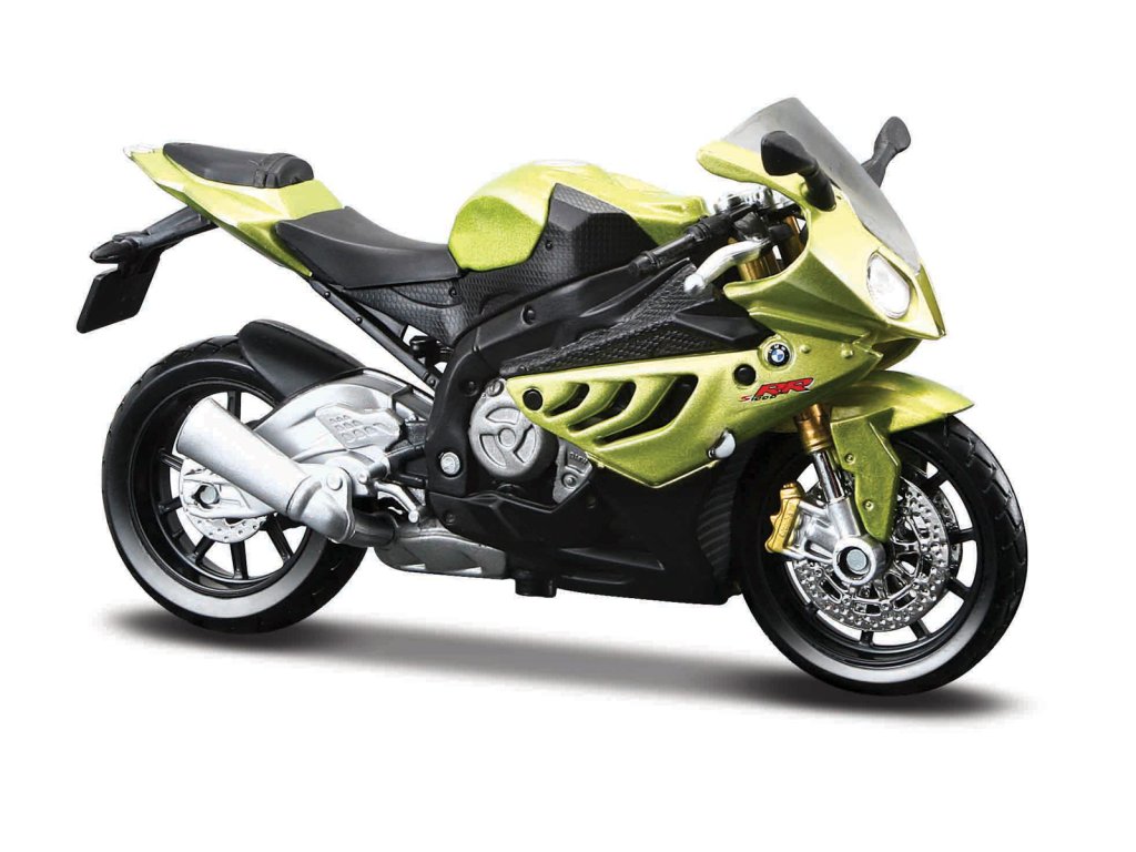 BMW S 1000 RR. Kovové modely motocyklov v mierke 1:18. Motocykle majú otáčavé riadidlá a odpruženú zadnú nápravu. Sú usadené na čiernom plastovom podstavci. Rozmery balenia: 16x10,5x7cm. Vek: 3+