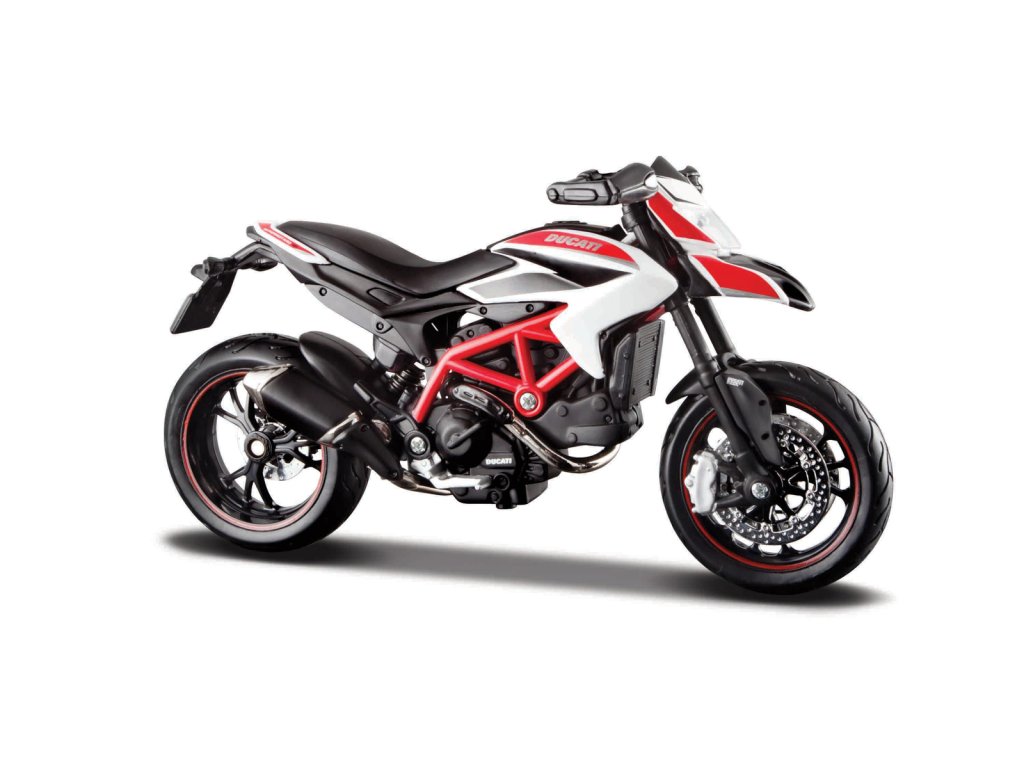 Ducati Hypermotard SP. Kovové modely motocyklov v mierke 1:18. Motocykle majú otáčavé riadidlá a odpruženú zadnú nápravu. Sú usadené na čiernom plastovom podstavci. Rozmery balenia: 16x10,5x7cm. Vek: 3+