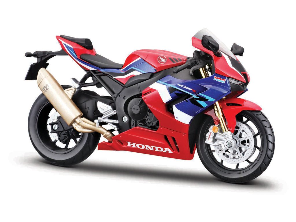 Honda CBR1000RR-R Fireblade SP. Kovové modely motocyklov v mierke 1:18. Motocykle majú otáčavé riadidlá a odpruženú zadnú nápravu. Sú usadené na čiernom plastovom podstavci. Rozmery balenia: 16x10,5x7cm. Vek: 3+