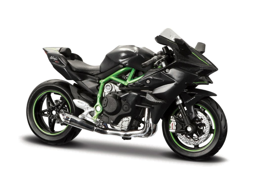 Kawasaki Ninja® H2™ R. Kovové modely motocyklov v mierke 1:18. Motocykle majú otáčavé riadidlá a odpruženú zadnú nápravu. Sú usadené na čiernom plastovom podstavci. Rozmery balenia: 16x10,5x7cm. Vek: 3+