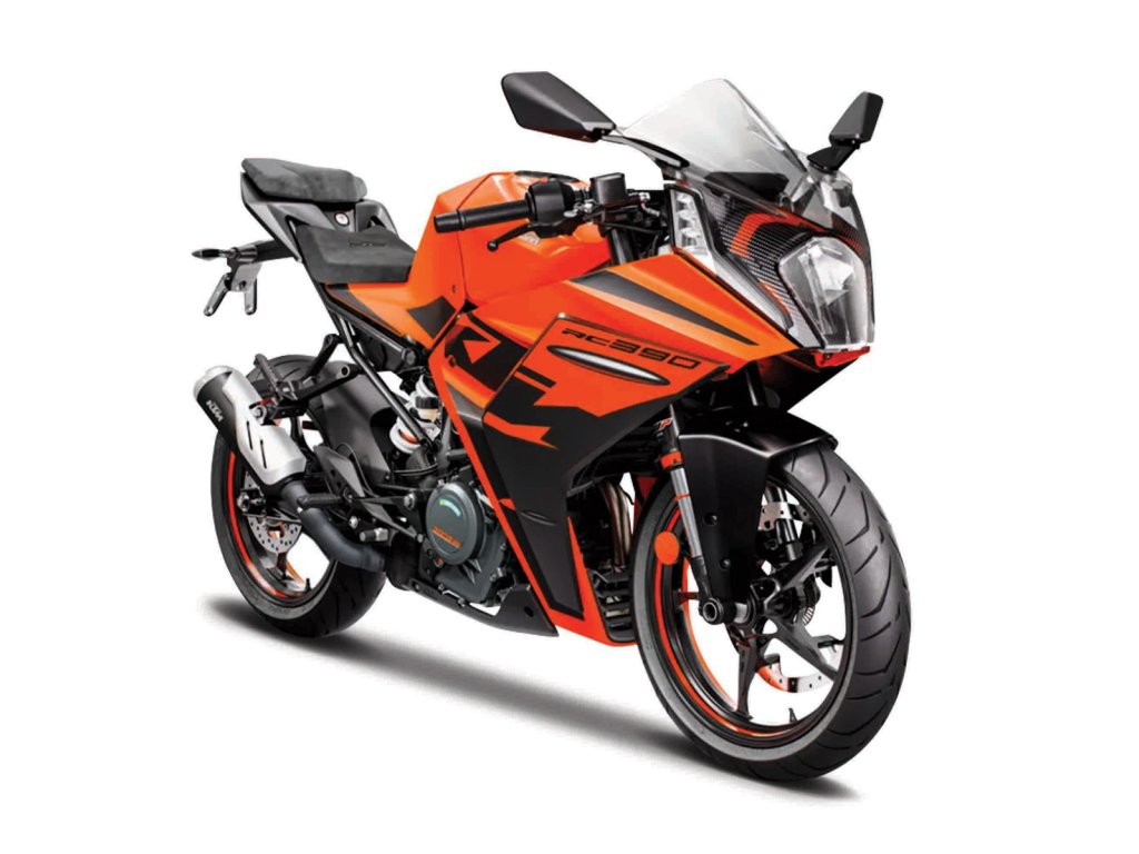 KTM RC 390. Kovové modely motocyklov v mierke 1:18. Motocykle majú otáčavé riadidlá a odpruženú zadnú nápravu. Sú usadené na čiernom plastovom podstavci. Rozmery balenia: 16x10,5x7cm. Vek: 3+