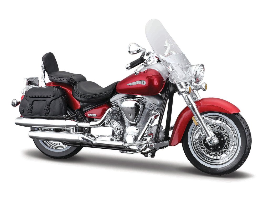 Yamaha Road Star Silverado. Plastové modely motocyklov v mierke 1:18. Motocykle majú otáčavé riadidlá a odpruženú zadnú nápravu. Sú usadené na čiernom plastovom podstavci. Rozmery balenia: 16 x 10,5 x 7 cm. Vek: 3+