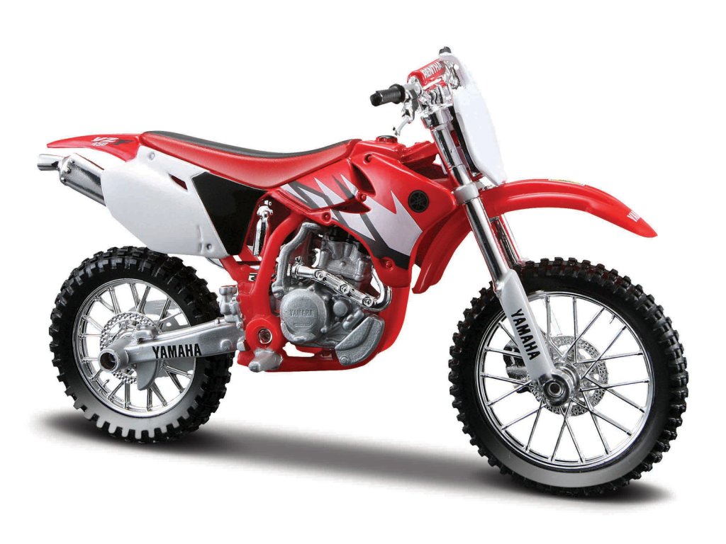 Yamaha YZ-450F. Kovové modely motocyklov v mierke 1:18. Motocykle majú otáčavé riadidlá a odpruženú zadnú nápravu. Sú usadené na čiernom plastovom podstavci. Rozmery balenia: 16x10,5x7cm. Vek: 3+