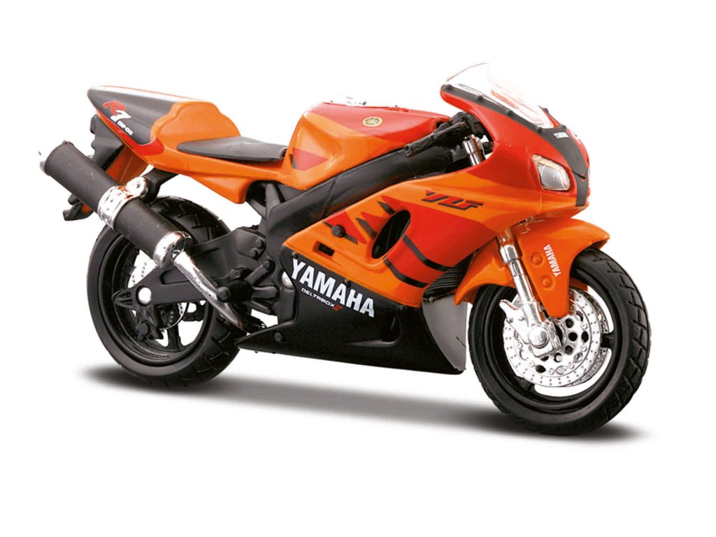 Yamaha YZF-R7. Kovové modely motocyklov v mierke 1:18. Motocykle majú otáčavé riadidlá a odpruženú zadnú nápravu. Sú usadené na čiernom plastovom podstavci. Rozmery balenia: 16x10,5x7cm. Vek: 3+