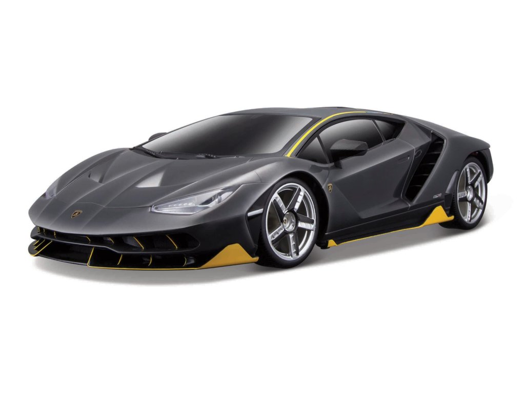 Lamborghini Centenario v mierke 1:14, šedá farba. Model od značky Maisto na diaľkové ovládanie. Auto má funkčné svetlomety. Frekvencia 2,4 GHz umožňuje súbežnú jazdu až so 4 RC modelmi. Auto využíva dobíjaciu batériu pomocou USB kábla (oboje súčasťou balenia). Diaľkový ovládač má dosah až 35 metrov. Ovládač používa 2x AAA batérie (súčasťou balenia). Rozmer balenia: 42,5x13,9x18,2 cm. Vek 5+