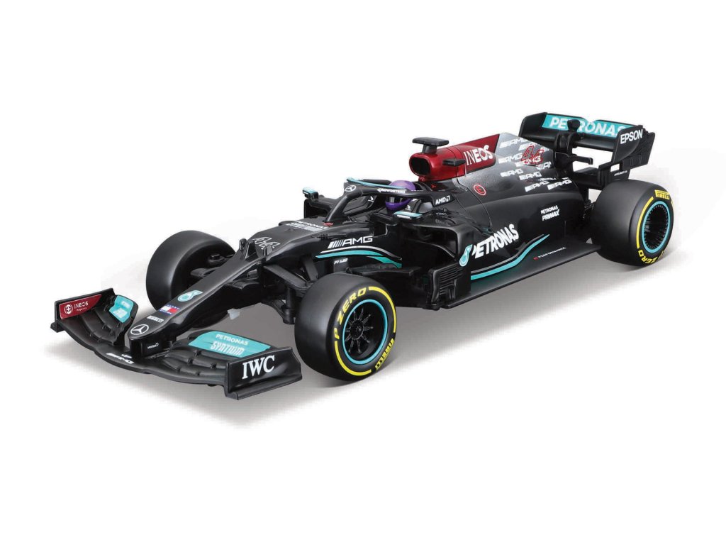 MERCEDES-AMG F1 W12 E Performance. Model závodnej formule na diaľkové ovládanie od značky Maisto. Model je v mierke 1:24. Vstavaná lítiová batéria, ktorá sa dobíja pomocou priloženého USB kábla. Ovládač je na 2xAAA batérie, ktoré sú súčasťou balenia. Dosah ovládača až 35m. Doba nabíjania 45 minút. Rozmery balenia: 29,2x12x15,2cm. Vek: 8+