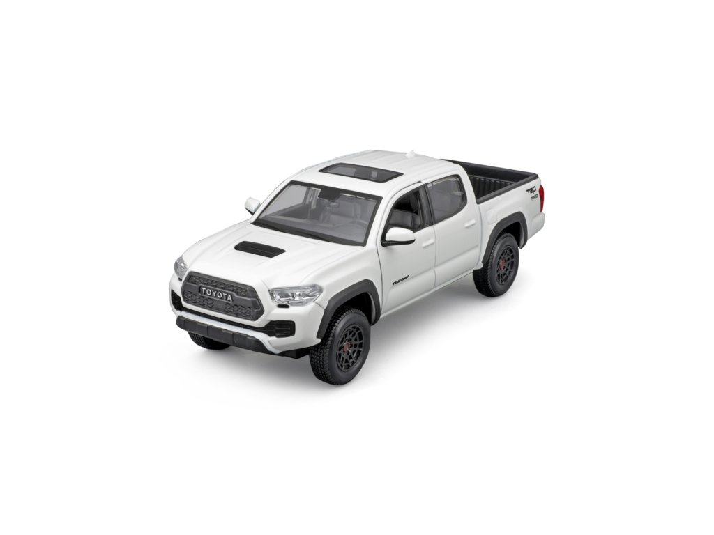 Toyota Tacoma TRD Pro v mierke 1:27 v bielej farbe. Model má otváracie dvere. Kovový model s plastovými dielmi. Rozmer balenia: 23,3x10,5x11,4 cm. Vek 3+