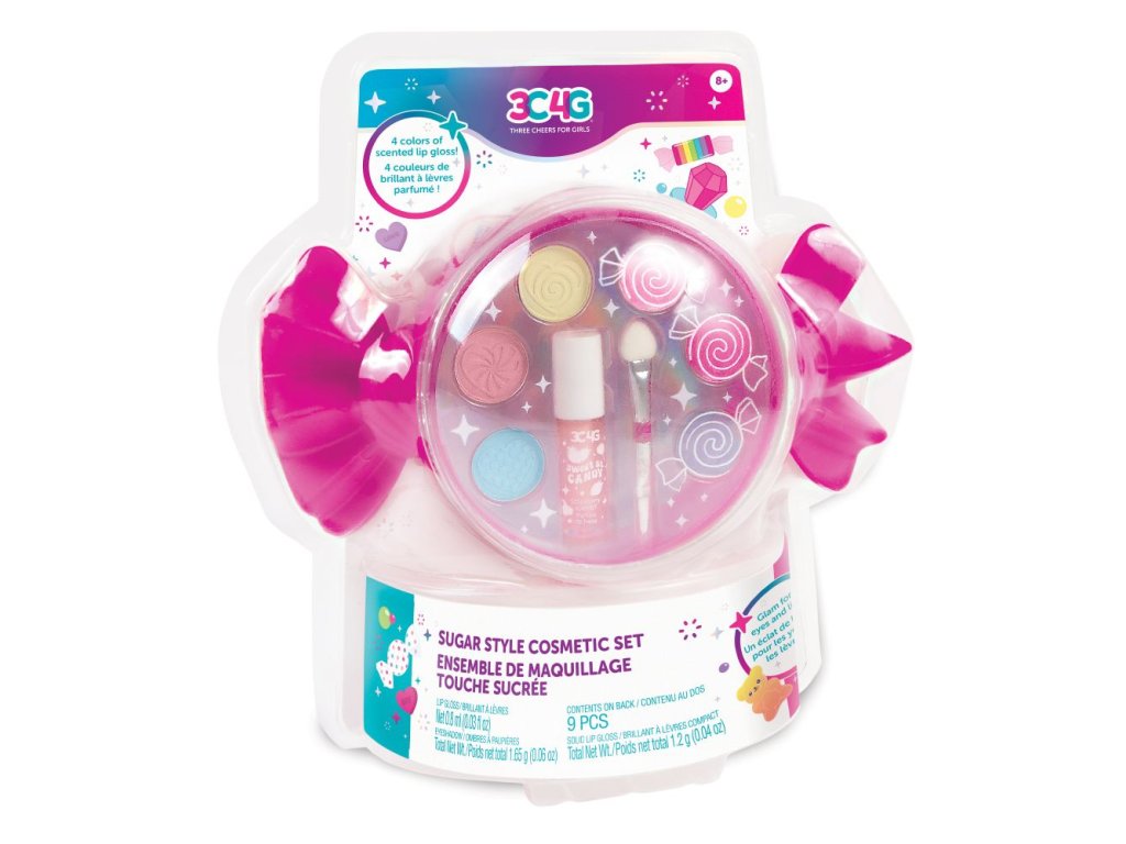 Vezmite si túto sladkú kozmetickú sadu na cesty! Táto sada s pestrou ponukou očných tieňov a voňavého lesku na pery je uložená v roztomilom puzdre v tvare cukríka. Súprava obsahuje 3 pevné lesky na pery s vôňou vanilky, 3 farby očných tieňov, aplikátor a 1 tekutý lesk na pery s vôňou jahôd. Všetka kozmetika je testovaná na bezpečnosť pre deti od 8 rokov. Skvelý tip na darček k narodeninám alebo k sviatku.