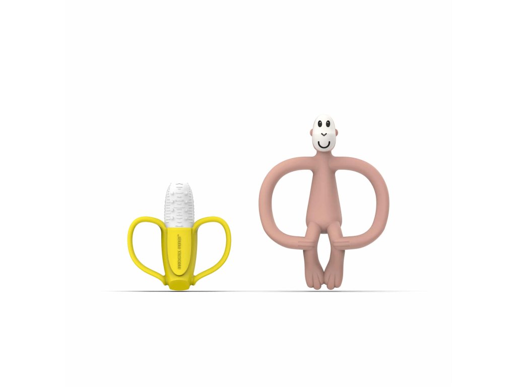 MATCHSTICK MONKEY DARČEKOVÝ SET HRYZADIEL BANÁN A OPICA DUSTY PINK MATCHSTICK MONKEY