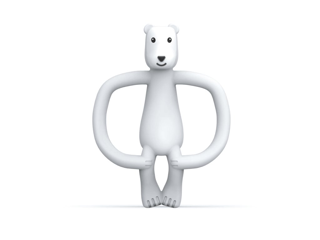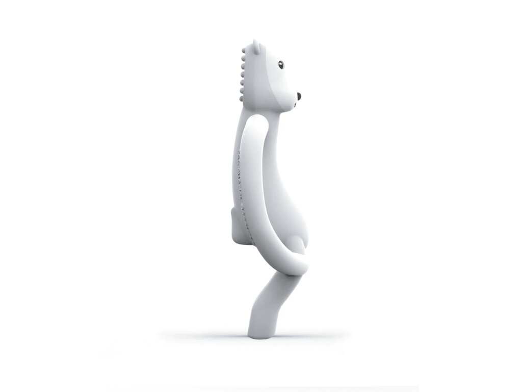 - Zábavné, mäkké, texturované hryzadlo sa vďaka svojmu tvaru dostane spolu so zubným prípravkom priamo k zdroju bolesti, pričom zubná kefka zároveň jemne masíruje ďasienka.