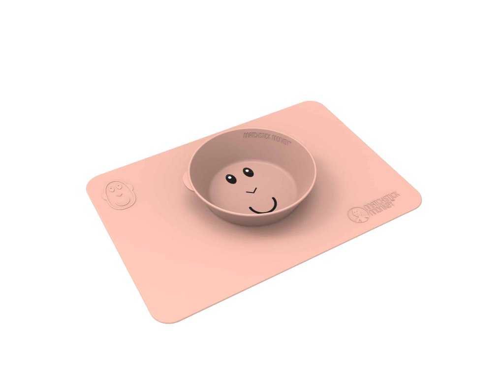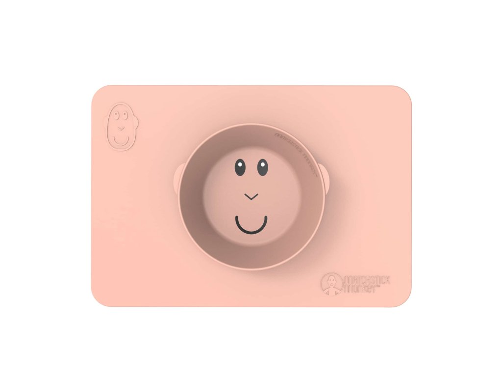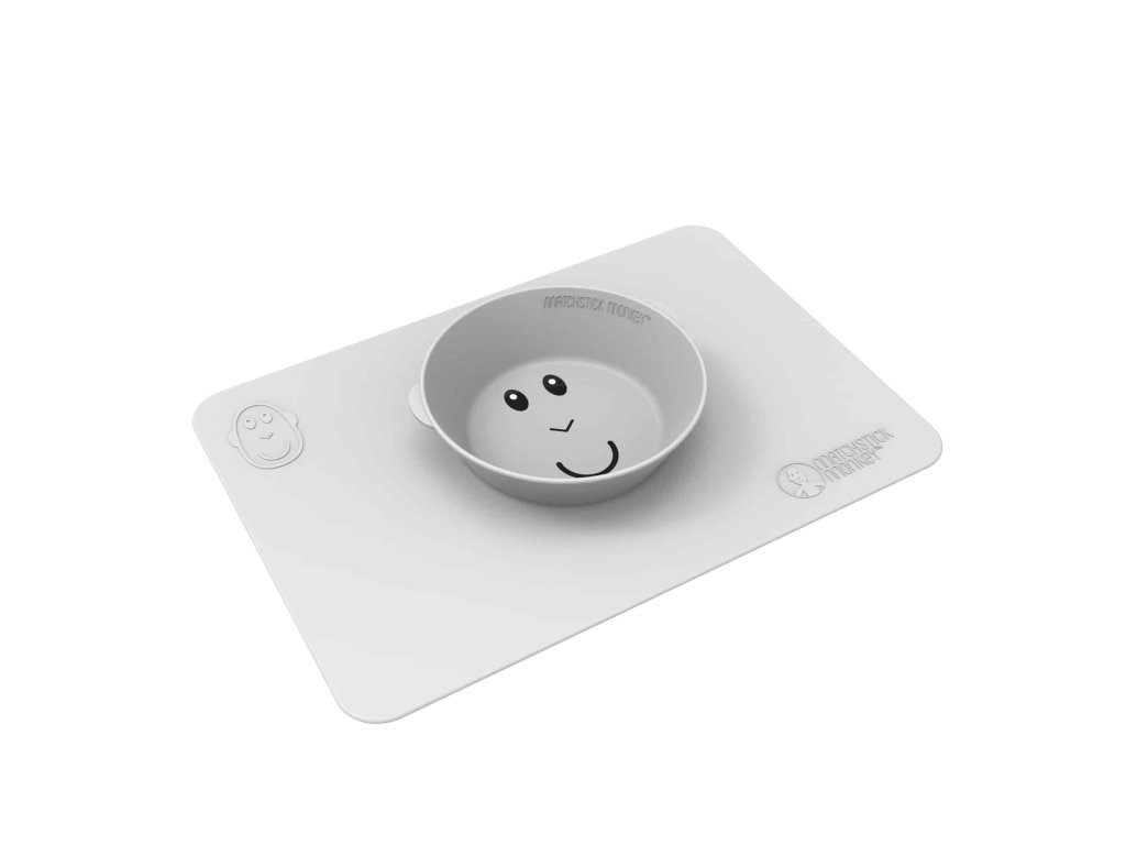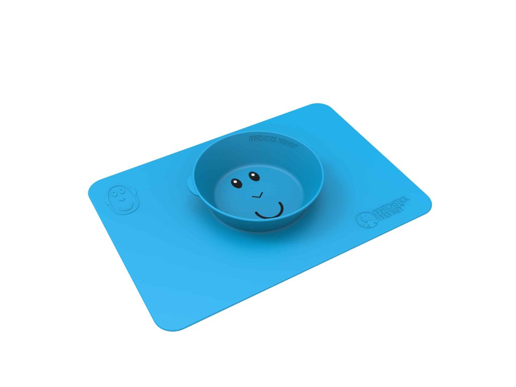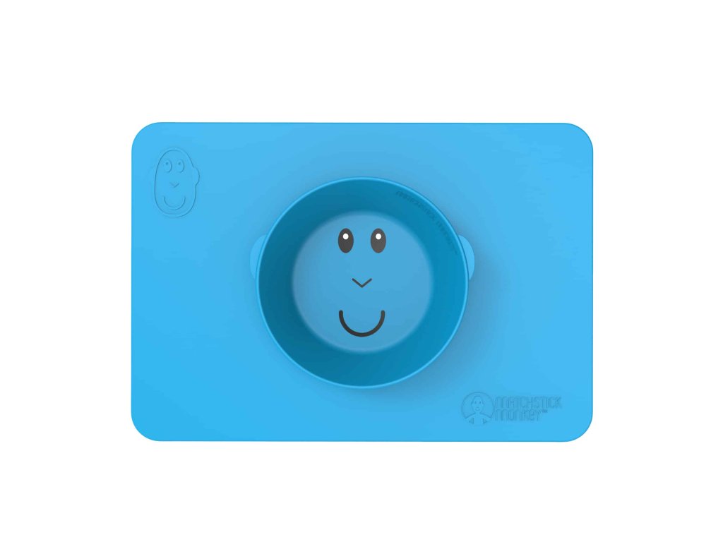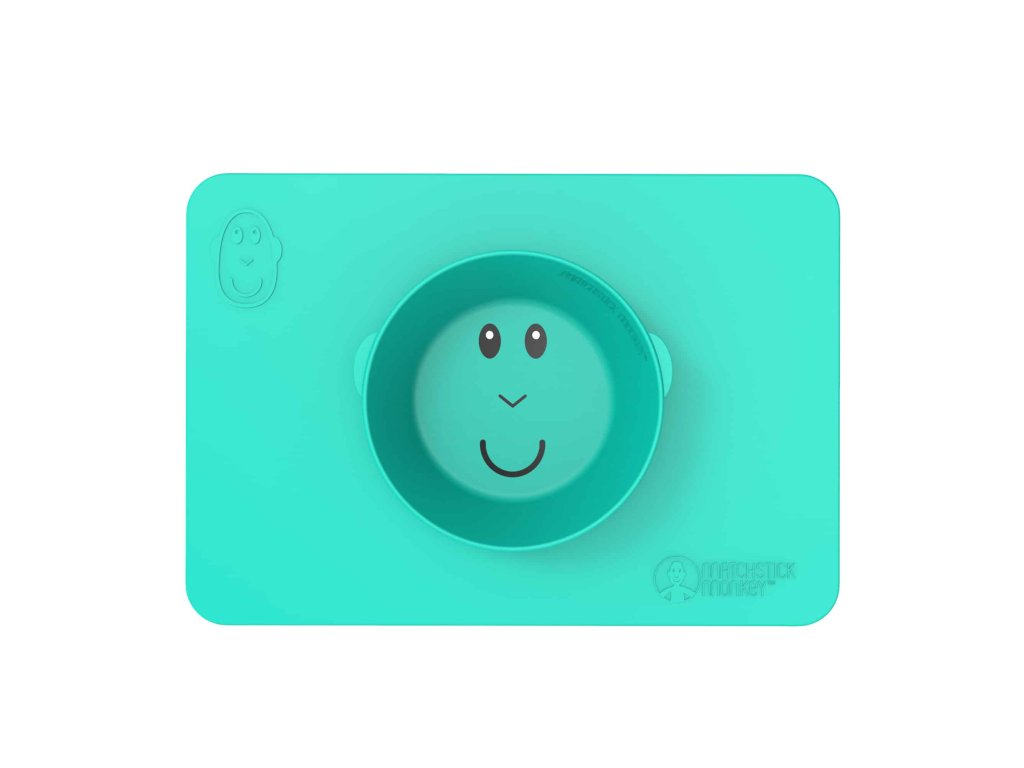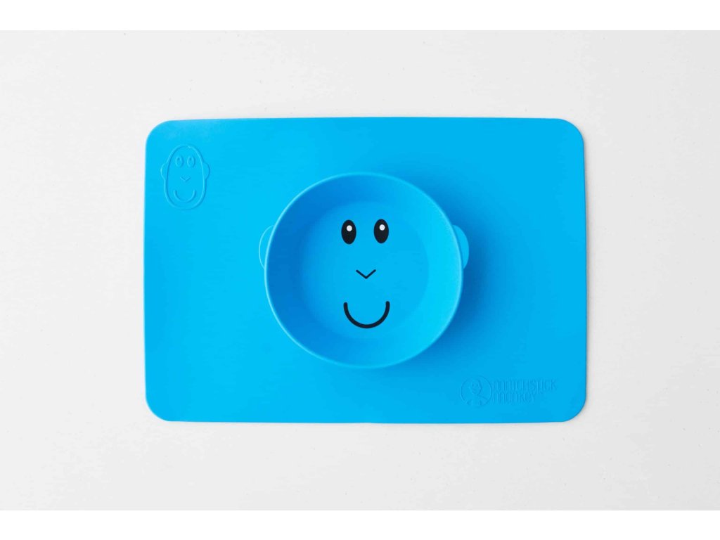 Protišmyková podložka s integrovanou miskou Matchstick Monkey v sviežich farbách a hravom dizajne je dokonalou pomôckou pre neporiadnych jedákov.