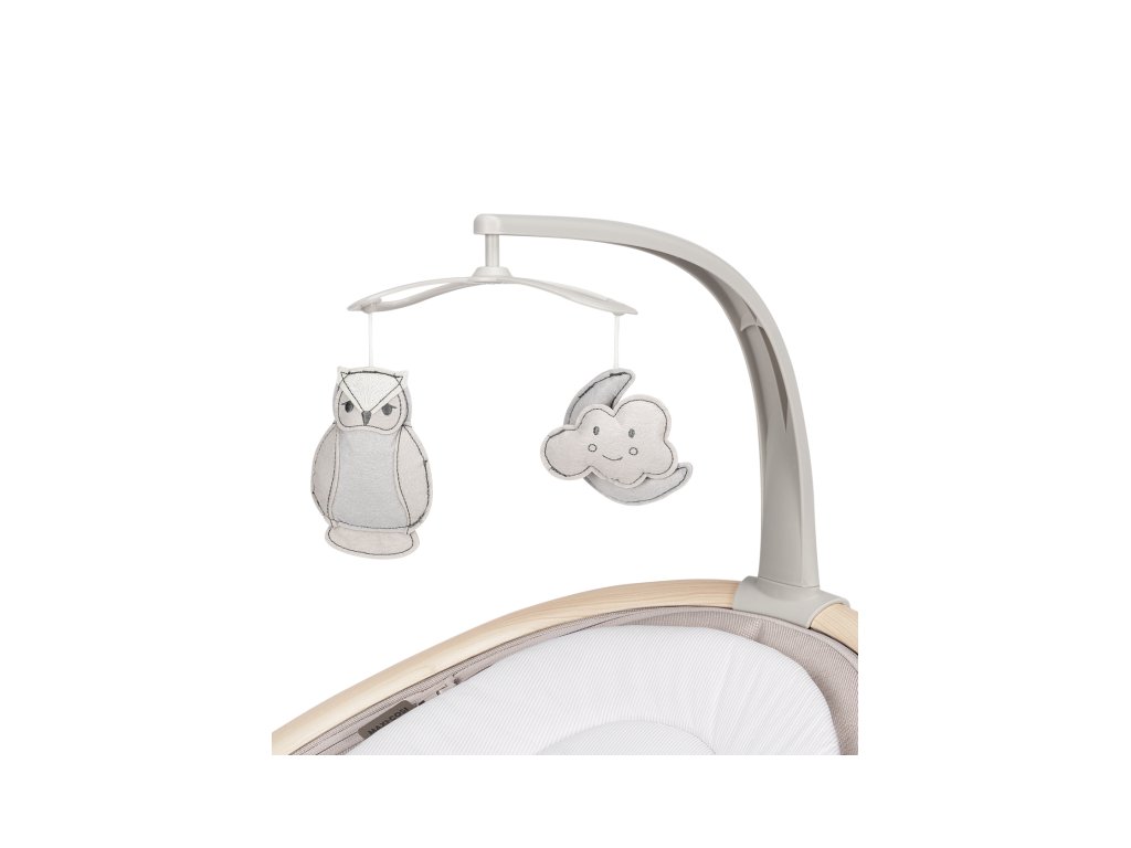 Lehátko umožňuje nastavenie piatich rýchlostí hojdania a časovač na 8, 15 alebo 30 minút. Lehátko môžete otáčať o 360 °, aby ste na seba s dieťaťom videli bez ohľadu na to, kde sa v miestnosti nachádzate. Lehátko ponúka dve polohy sklonu na spanie aj na pozorovanie okolia. Hudobný box s možnosťou nastavenia hlasitosti obsahuje 12 melódií a prírodných zvukov. Detektor pohybu automaticky zapne upokojujúce hojdanie, keď sa dieťa prebudí a začne plakať.