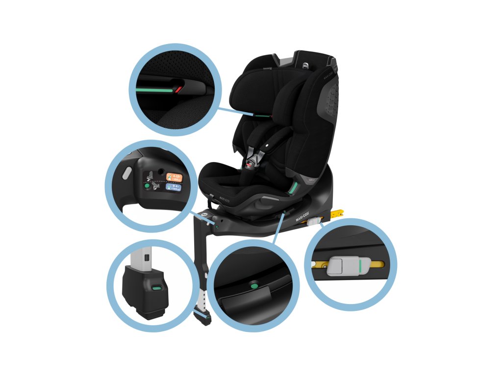 - integrovaná základňa s opornou nohou umožňuje jednoduchú a spoľahlivú inštaláciu do auta s pomocou systému ISOFIX