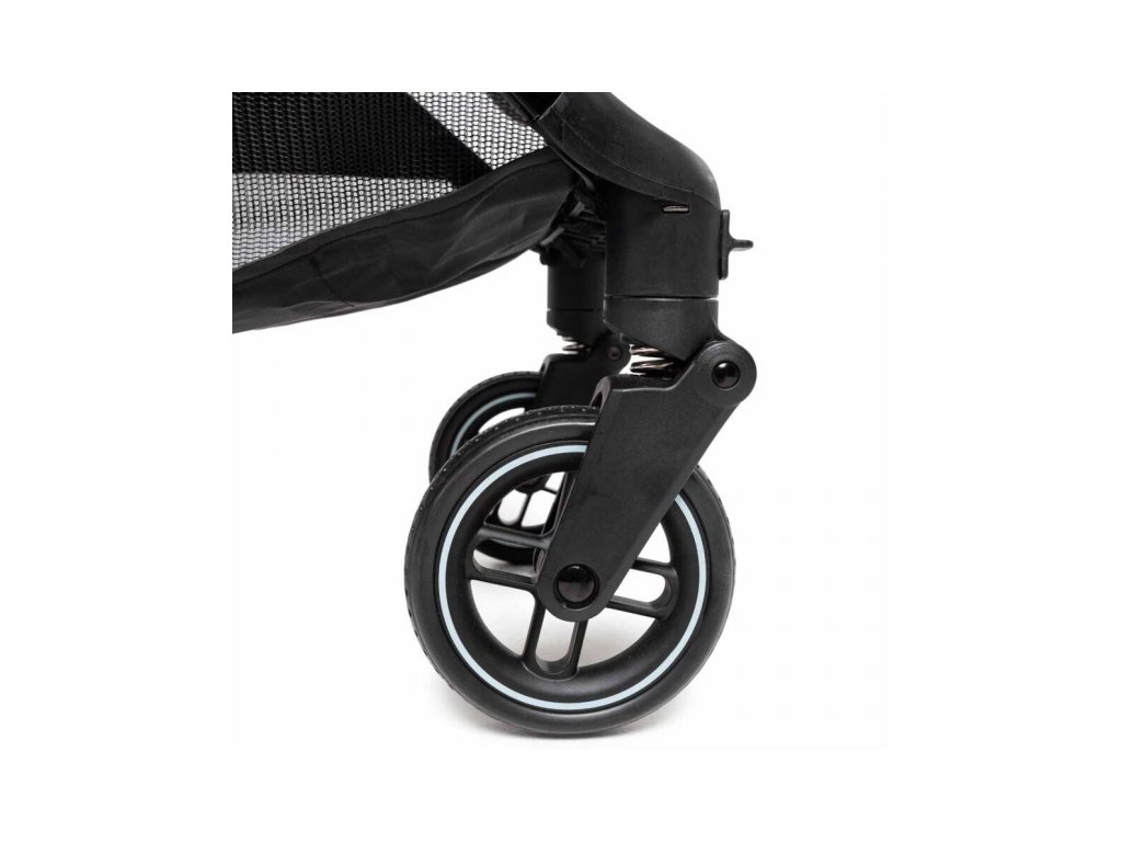 - Predné kolesá kočíka sú otočné o 360 ° pre ľahké manévrovanie