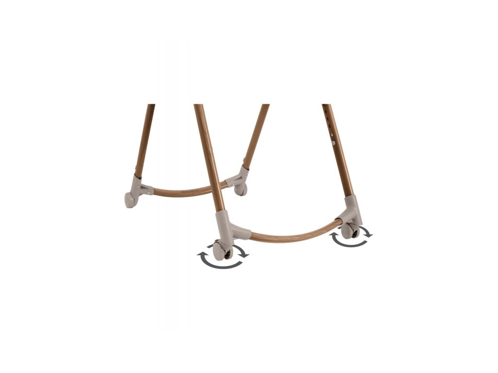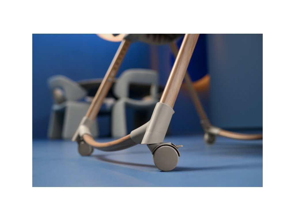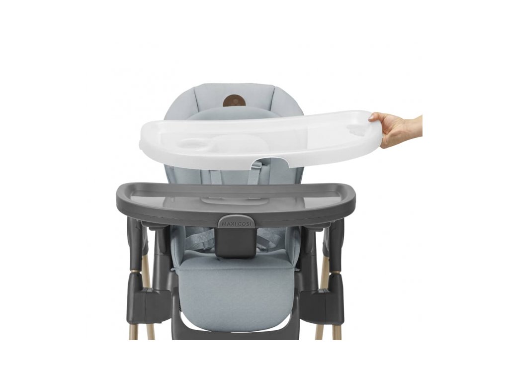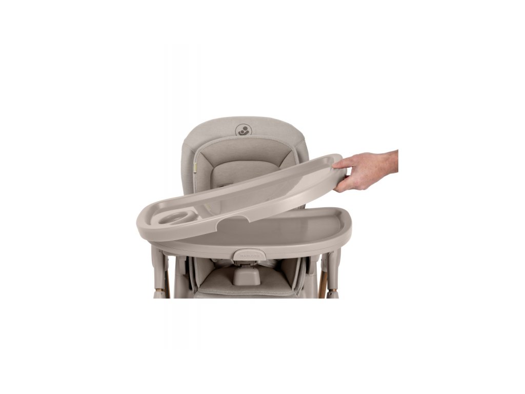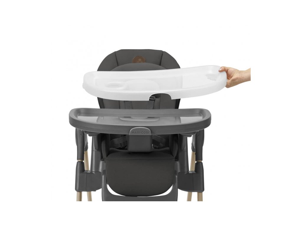 Unikátny otočný jedálenský pult uľahčuje manipuláciu s dieťaťom, usadenie dieťaťa do stoličky je tak oveľa jednoduchšie a pohodlnejšie. Keď pult práve nepoužívate, je možné ho zavesiť na zadné nohy stoličky. Odnímateľná tácka na jedálnom pulte uľahčuje jej údržbu po stolovaní.