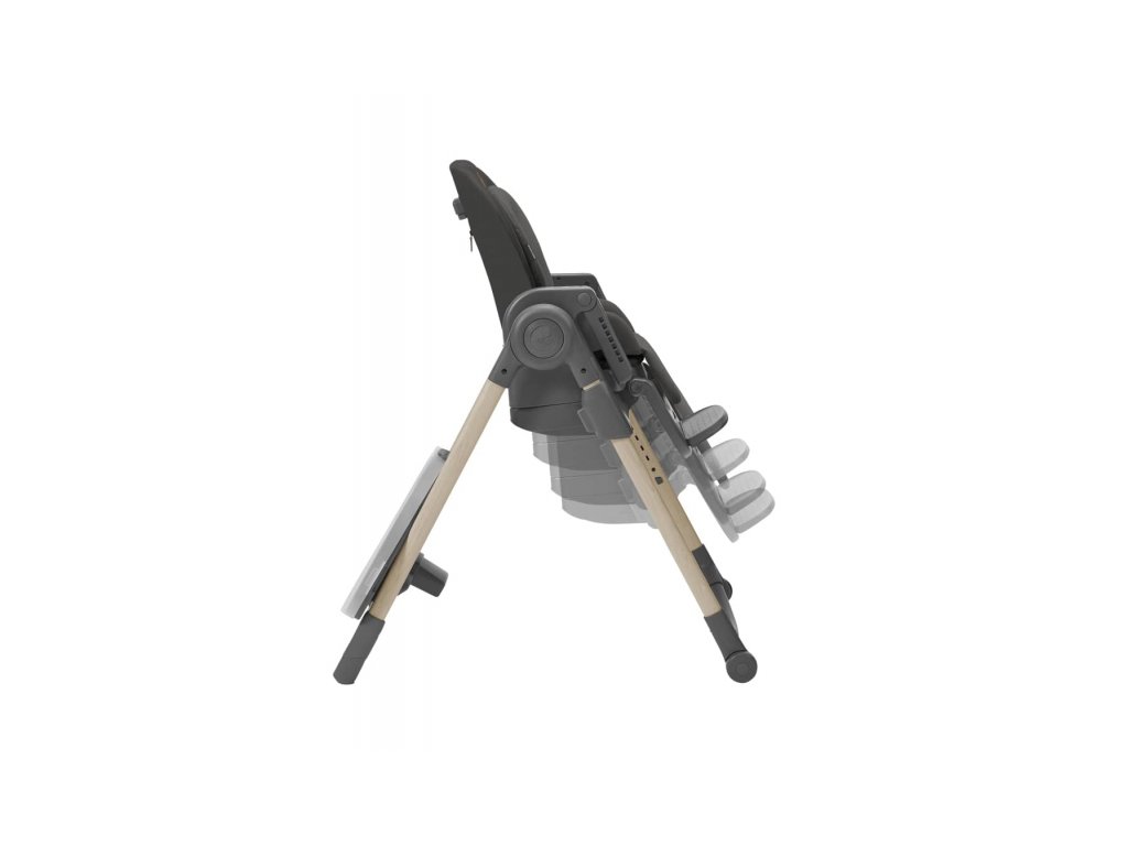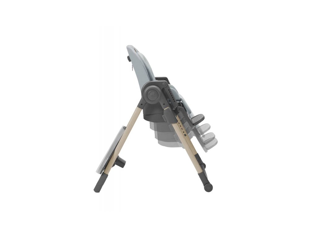 Stolička ponúka 9 nastavení výšky a je tak vhodná takmer ku každému stolu. Zadnú opierku môžete nastaviť do 5 rôznych polôh od ležania po sedenie. Variabilitu nastavenia dopĺňajú 4 varianty polohovania nôh a 2 pozície podpierky na nohy.