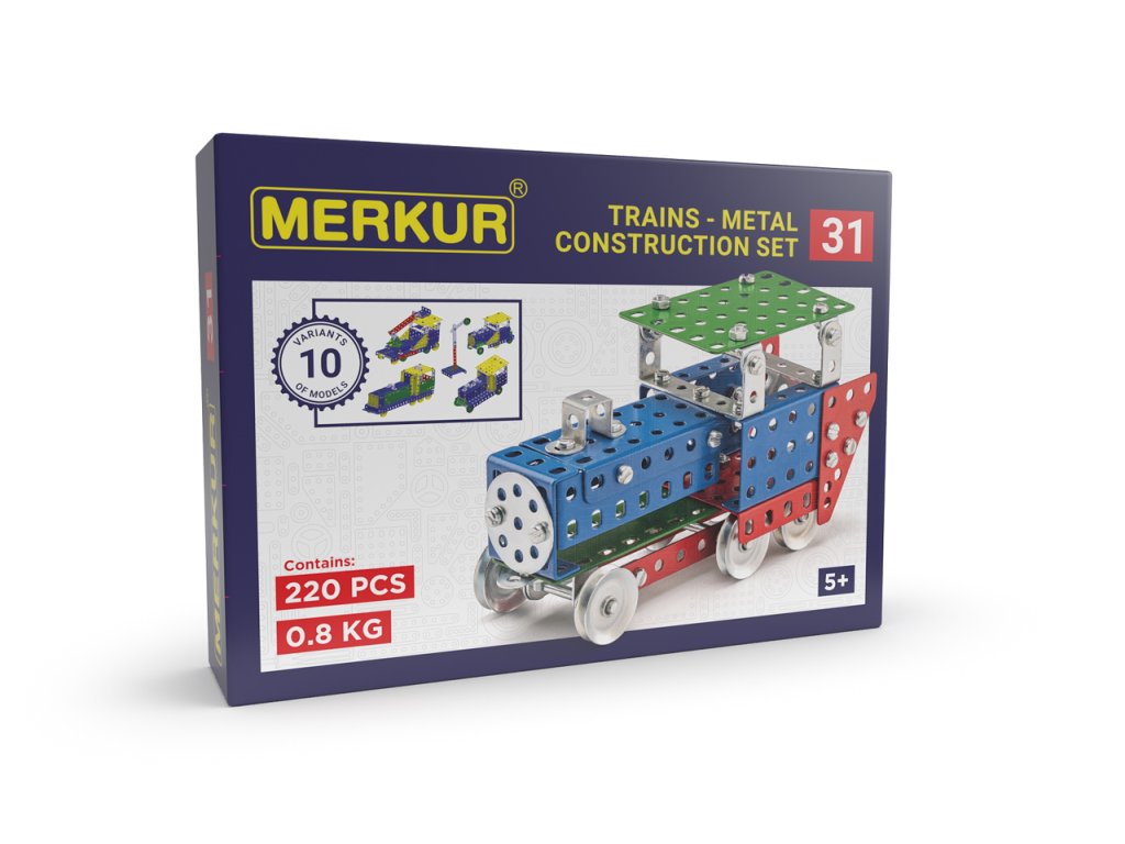 Z tejto jednovrstvovej stavebnice sa dá zostaviť 10 rôznych modelov, napr. lokomotíva, nákladný vagón a niekoľko ďalších železničných modelov. Stavebnica obsahuje 220 dielikov vrátane návodu a náradia. Vhodné aj pre deti, ktoré s Merkurom začínajú. So zostavenými modelmi sa dá hrať, sú veľmi odolné. Počet dielov: 220. Rozmer balenia: 25,5 x 18 x 5 cm. Vek: 5+. Nevhodné pre deti mladšie ako 3 roky. Hmotnosť: 0,8 kg