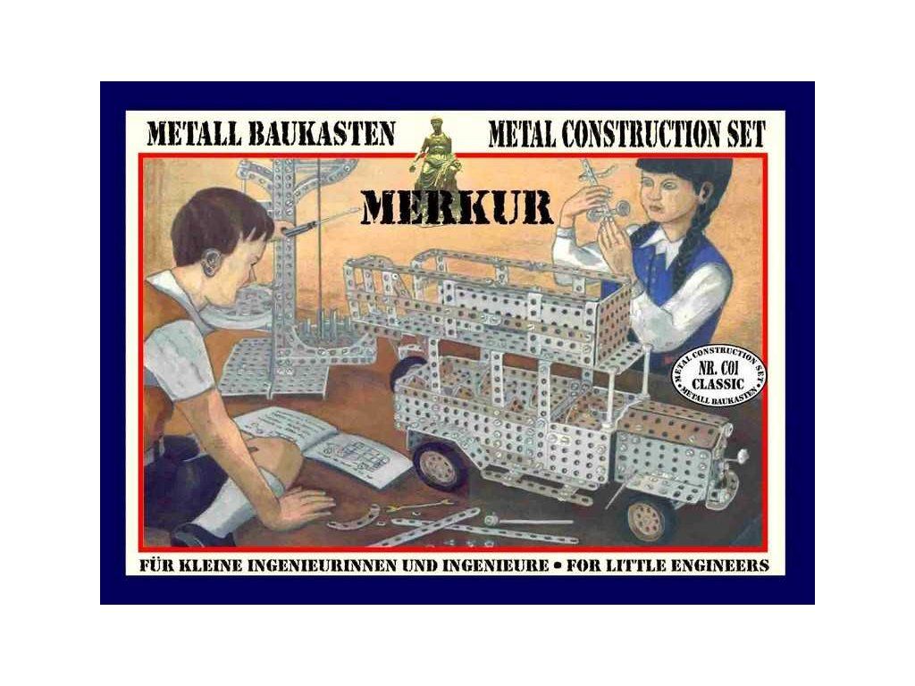 Merkur Classic C01 - jedná sa o exkluzívnu stavebnicu, ktorá je replikou podobných stavebníc zo začiatku minulého storočia. Všetky súčiastky sú z tradičných materiálov a vo farbách ako je zinok, patina či bezfarebný lak. Vhodné aj pre deti, ktoré s Merkurom začínajú. So zostavenými modelmi sa možno hrať, sú veľmi odolné. Rozmer balenia: 38 x 29 x 5 cm. Vek: 6+. Nevhodné pre deti mladšie ako 3 roky.