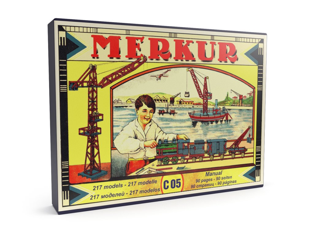 Jedná sa o exkluzívnu stavebnicu balenú v štýlovom predvojnovom dizajne, ktorá je replikou stavebnice zo začiatku minulého storočia. Všetky súčiastky sú z tradičných materiálov a tiež v klasických MERKURových farbách. V stavebnici nenájdete žiadne plastové dielce a všetky súčiastky sú uložené v papierových vložkách alebo kovových a papierových krabičkách. Súčasťou stavebnice MERKUR CLASSIC C03 je 94-stranová knižka s návodmi vyrobená v štýle tridsiatych rokov. Táto veľká knižka je koncipovaná pre stavebnice MERKUR Classic C03, C04, C05 - 217 modelov. Stavebnica obsahuje 339 dielikov. Rozmer balenia: 36 x 28 x 6 cm. Vek: 5+. Nevhodné pre deti mladšie ako 3 roky.