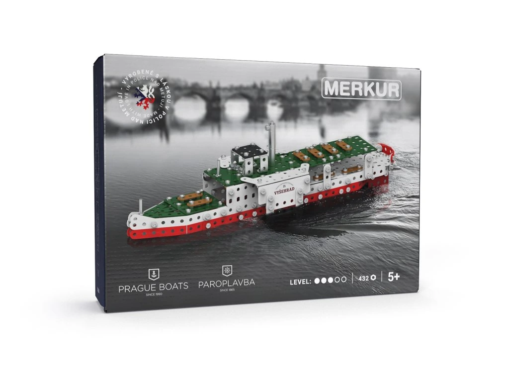 Ponorte sa do sveta kreativity a zábavy so stavebnicou Merkur – Parník Vyšehrad. Táto limitovaná edícia parníka Vyšehrad vznikla v spolupráci s Prague Boats, ktorá tento rok oslavuje 160 rokov paroplavby. Jedinečná sada je ideálnym nástrojom na rozvoj technických zručností a predstavivosti detí. Stavebnica obsahuje kvalitné kovové diely, ktoré sa ľahko spájajú skrutkami, čo podporuje rozvoj jemnej motoriky, logického myslenia a sústredenia. Sada obsahuje: 432 dielikov. Úroveň Merkur obtiažnosti: . Balené v krabičke. Rozmery parníka: Rozmer balenia: 18 x 25,3 x 5,3 cm. Vek: 5+