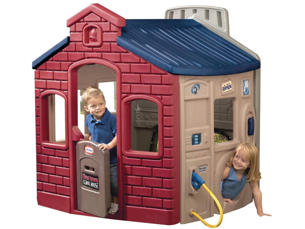 Na športové stene nájdete Basketballová kôš, futbalovú bránku a štyri očíslované ciele. Súčasťou balenia je aj lopta. Na stene obchod na deti čaká pult, bankomat, servírovacie okienko a vylisované detaily ovocia v prepravkách. Na stene pre motoristov si deti môžu vyhrať s čerpacou stanicou s tankovacím stojanom, prenosným telefónom. Predná stena je koncipovaná ako vchod do školy, vnútri deti nájdu stolček a tabuľu. Rozmer: 147dx155šx140v cm.