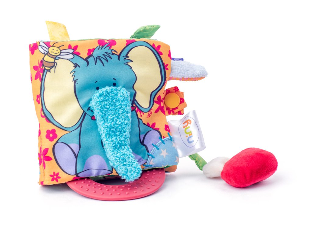 Látková knižka je hračka pre bábätká a batoľatá. Je plná dotykových, vizuálnych i zvukových vnemov. Zaujme ťa už od prvej chvíle ako ju vezmeš do ruky. Každý jej detail je premyslený tak, aby zaujal. Nájdeš tu pískatko, hryzadlá, množstvo častí, ktoré vydávajú zvuk krčiaceho papiera, časti, ktoré sa dajú odklápať, vsúvať, okusovať a preskúmavať. Proste-stále je čo objavovať! Vek: 0+ | Rozmer: 13 x 19 x 7 cm | Design nemeckej návrhárky Britta Hurter
